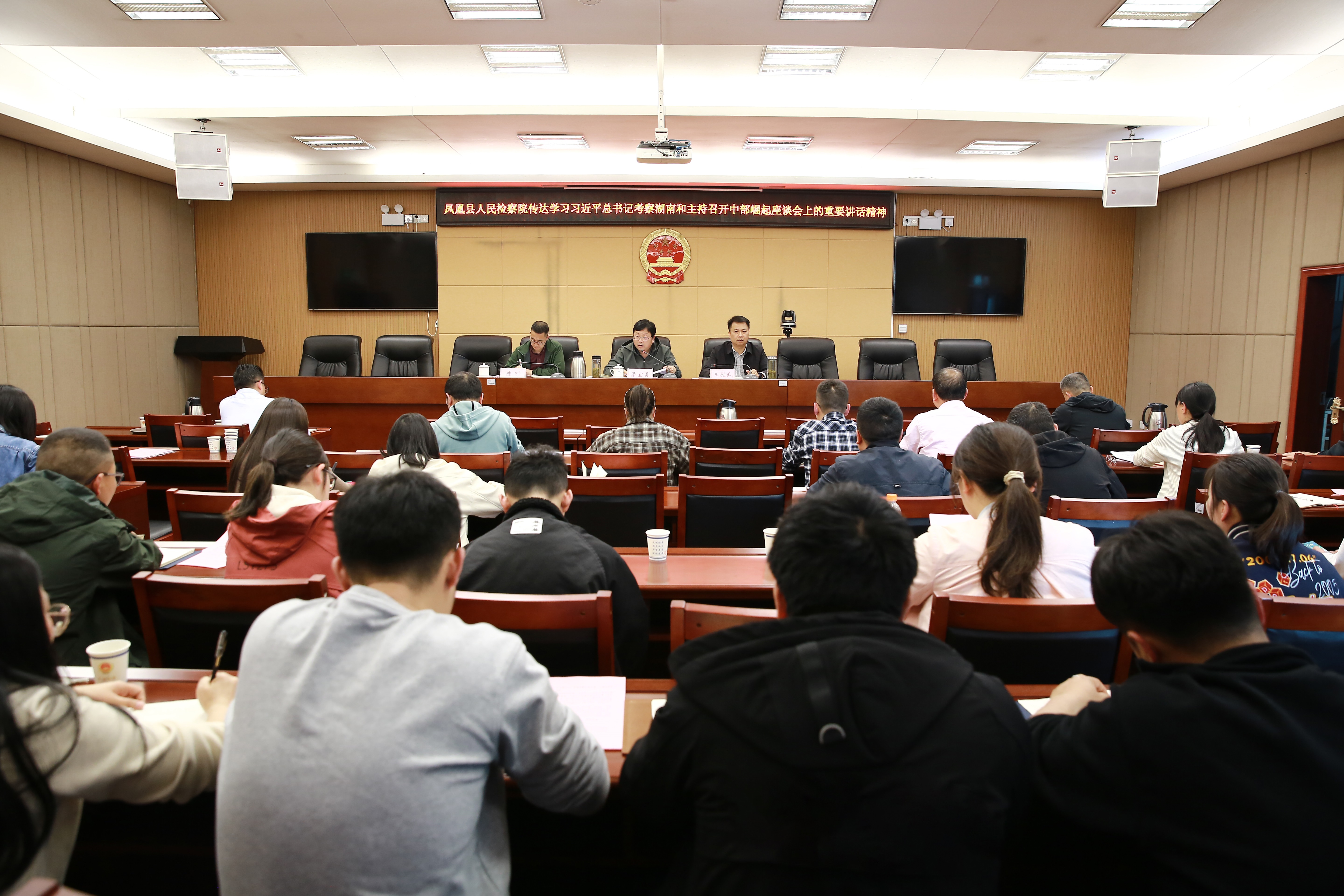 【湘西检察网讯】(通讯员 欧佳华吴玥明)近日,凤凰县人民检察院召开全院干警大会,院党组书记、检察长梁宜勇主持会议,在家院领导、全体干警参加会议。